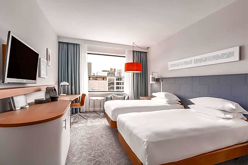 Admire the city view from the 9th and 10th floors of the hotel in this Twin Hilton Executive Room. The room features twin Hilton Serenity beds, plus a spacious bathroom with bath or walk-in shower. Additional amenities include two complimentary bottles of water and a Nespresso coffee machine. Enjoy exclusive access to the Executive Lounge, serving coffee, tea, and fresh fruits. Breakfast, a drink, and appetizer will be served at JAQ restaurant. Stay connected with complimentary WiFi access and watch the LCD TV. Special touches include fluffy bathrobes, slippers and tea/coffee making facilities.